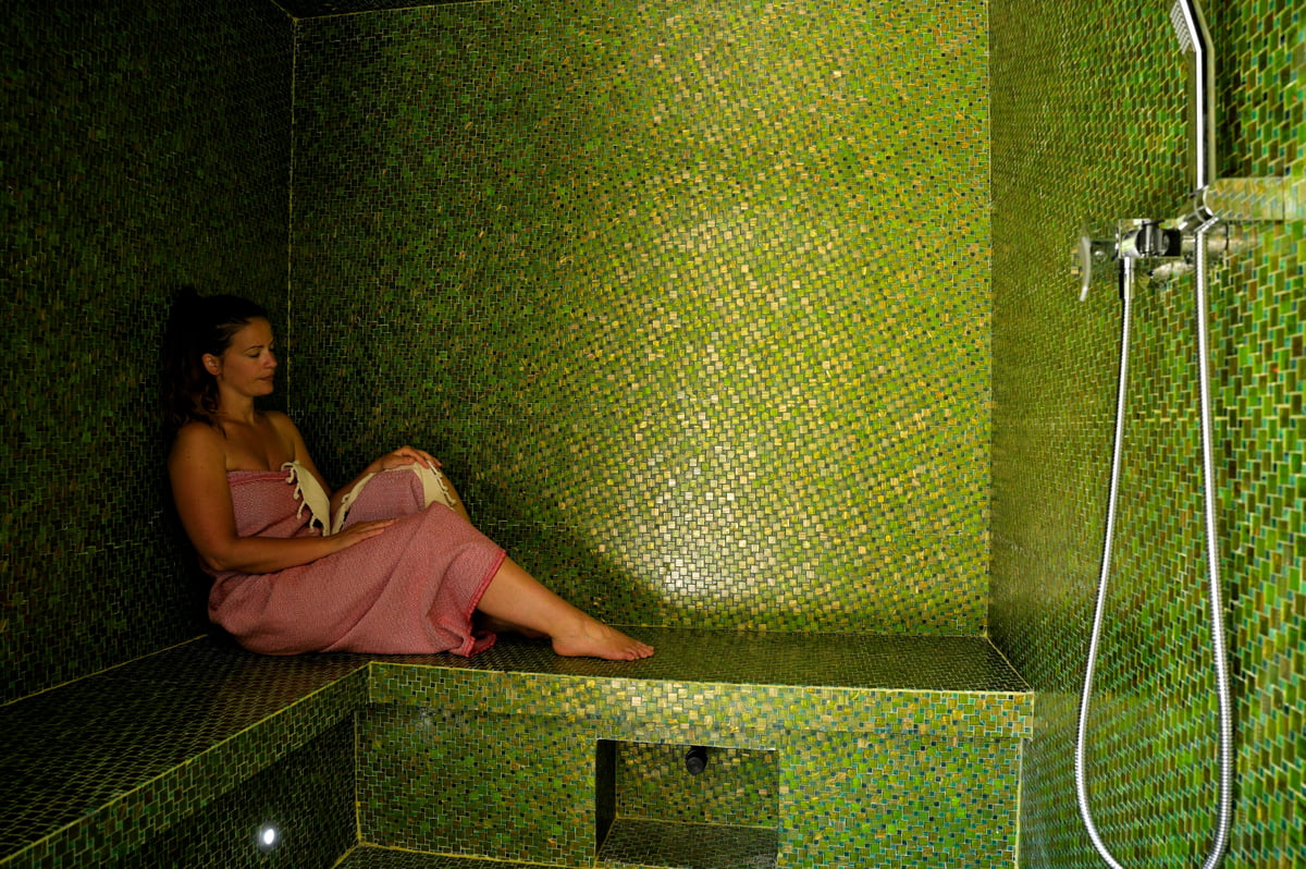 A hammam with immortelle essences that promote breathing and relaxation, From an oriental tradition, the hammam is one of the best things you can offer your body, it opens the pores of the skin and helps eliminate impurities and bacteria, it frees the sinuses and nasal passages and facilitates breathing, it soothes muscle pain, eliminates tension and allows immediate relaxation. All this is possible thanks to the benefits of heat combined with humidity. Indeed, unlike a sauna, the humidity of the air in a hammam is 100%, which makes the heat easier to bear for some people. The steam generator allows the temperature to rise to 50°C.